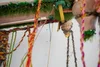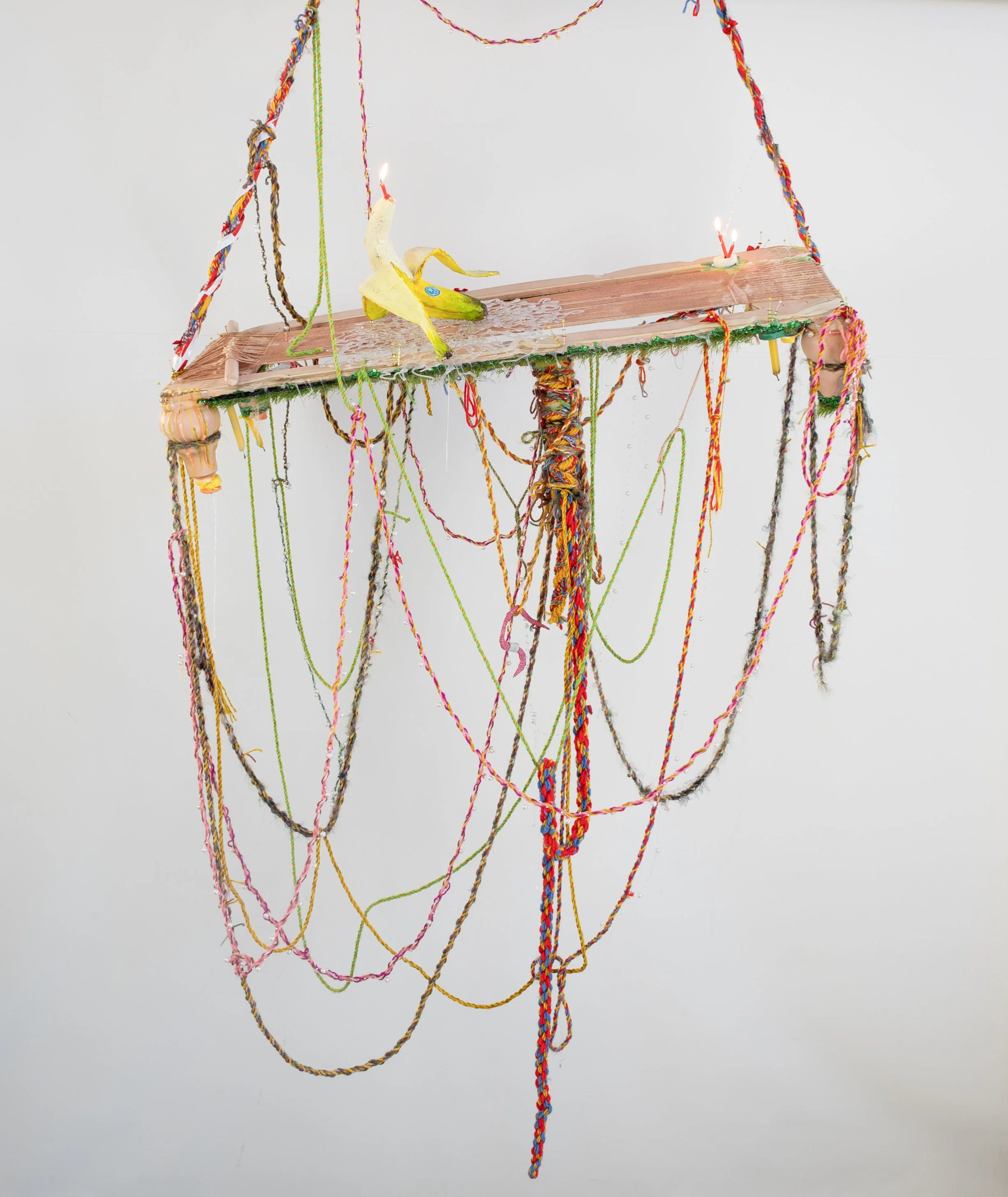 Grandma's House, 2019, Materials: dinning room chairs, TV tray, wax, plastic pearls, foam, spray paint